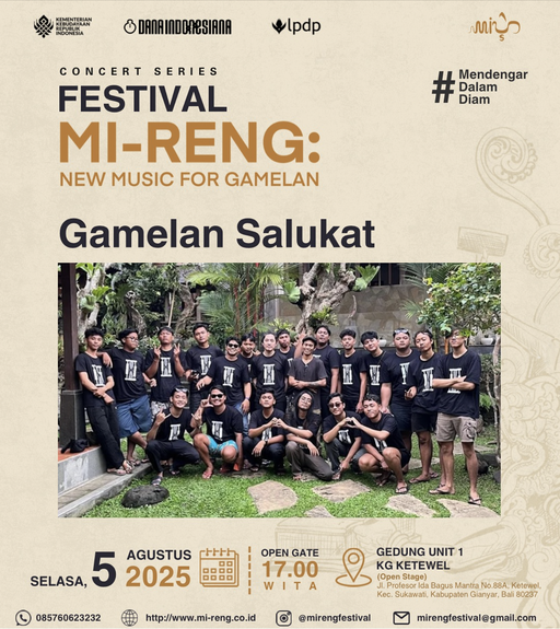 During the festival, Gamelan Salukat will perform a few stages among several other gamelan groups both from Indonesia and outside Indonesia, which includes an experimental performance of Dewa Alit's composition for gamelan and the carillon at Mariahilfkirche church in Munich.